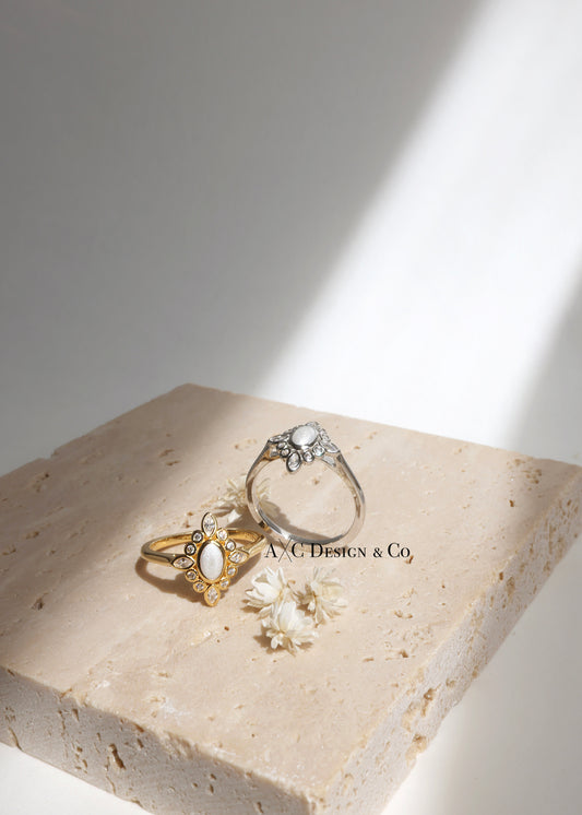 Oval Daisy 18K Gold Vermeil Breastmilk Ring (DIY KIT)