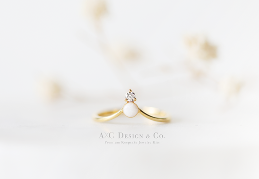 Solid 18K Gold Minimalist Diamond Crown Breastmilk Ring (DIY Kit)