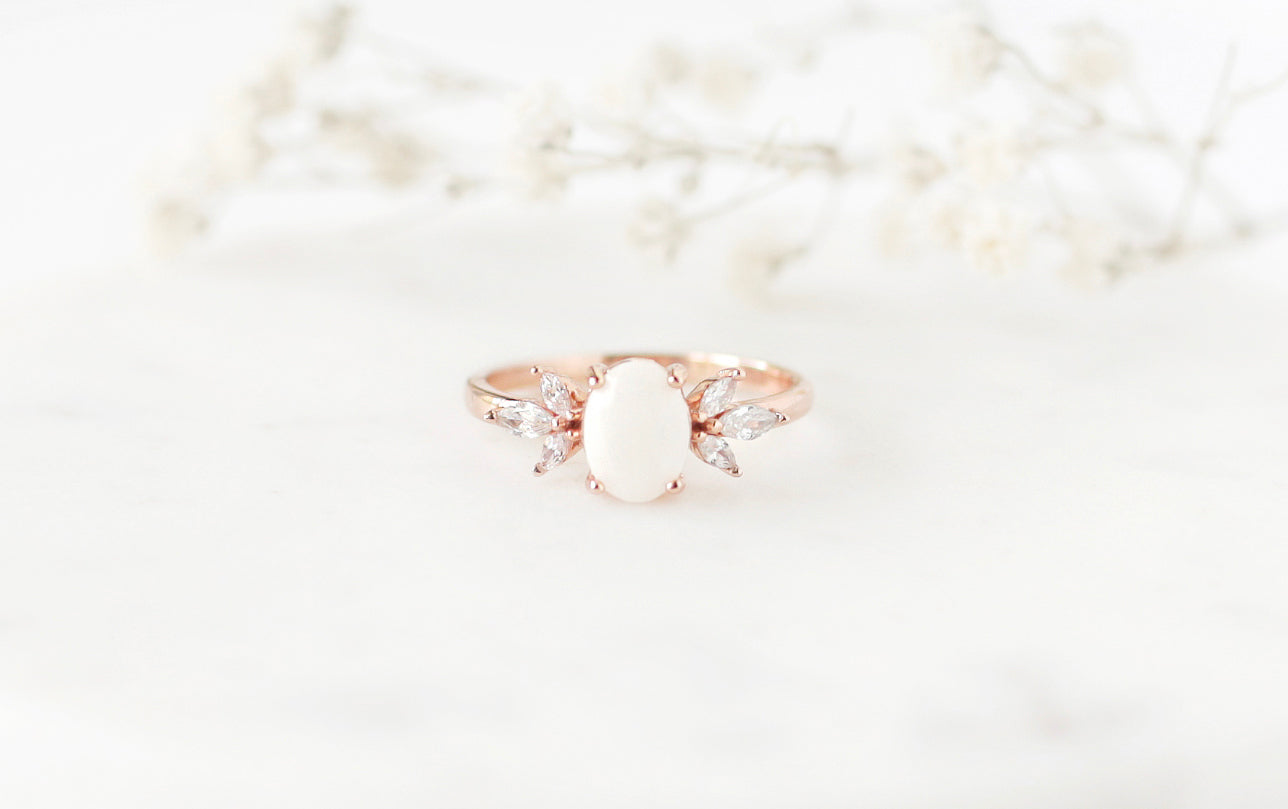 This is our timeless Oval Wing Breastmilk Ring, adorned withΒ 6 delicate marquiseΒ Cubic Zirconia side stones artfully resembling ethereal wings. Effortlessly feminine and adorned with subtle sparkle, this ring captures the essence of elegance and grace.Β