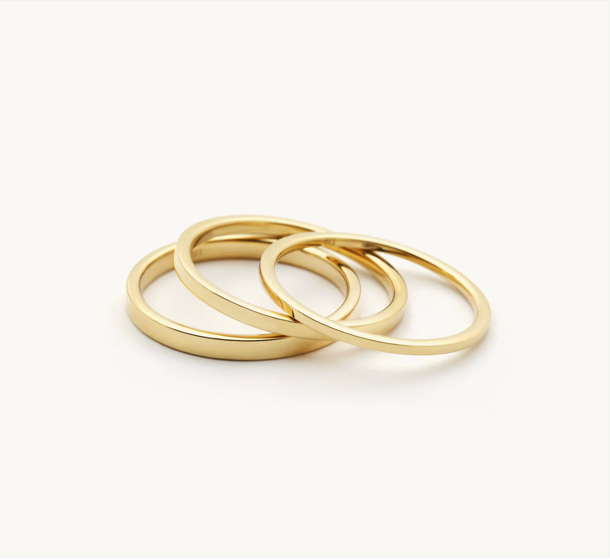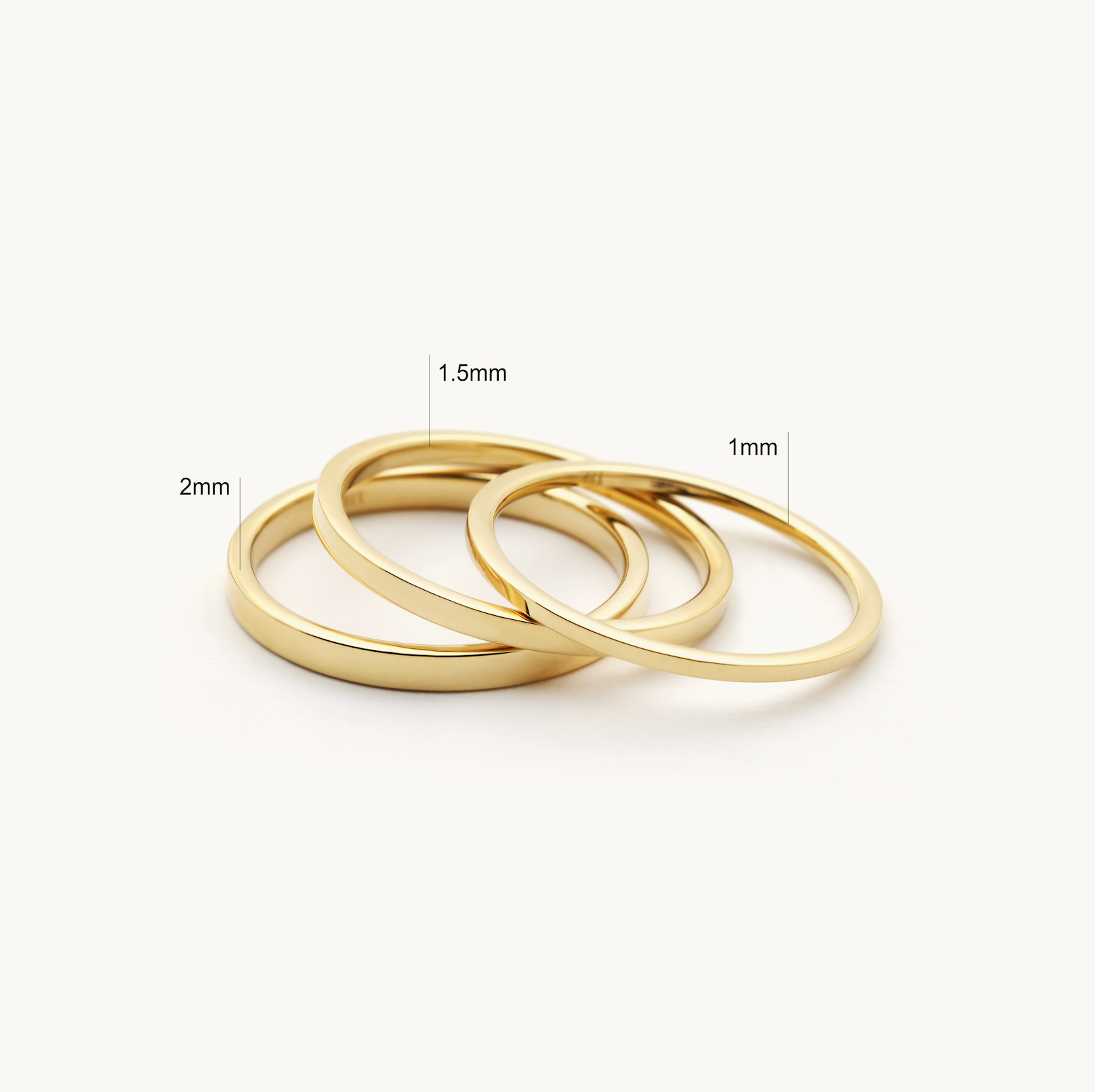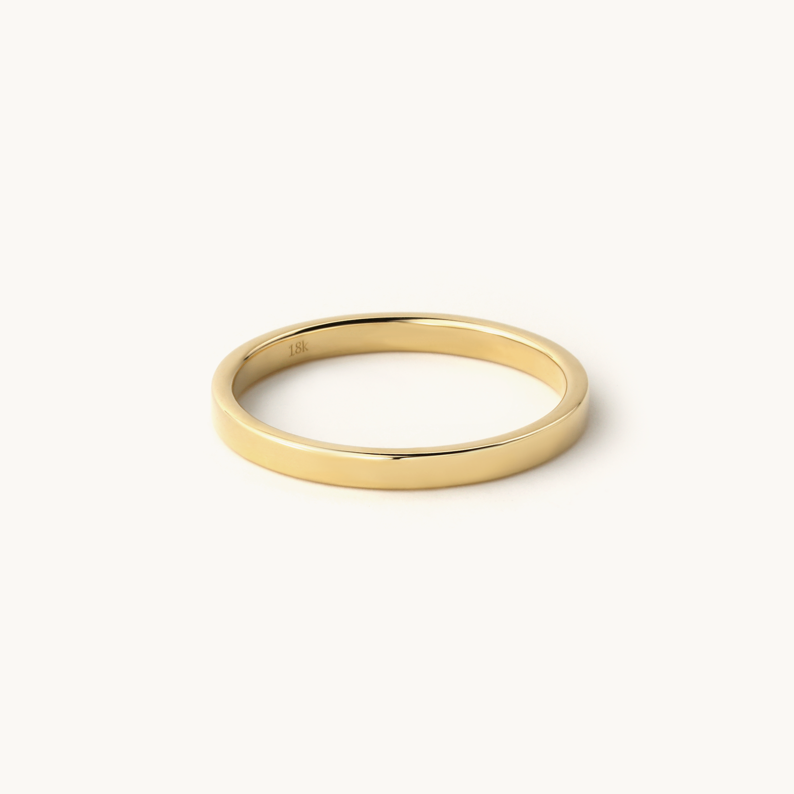 These bands are in solid 18K gold. Ultra thin with a straight edge, width available in 1, 1.5, or 2mm.